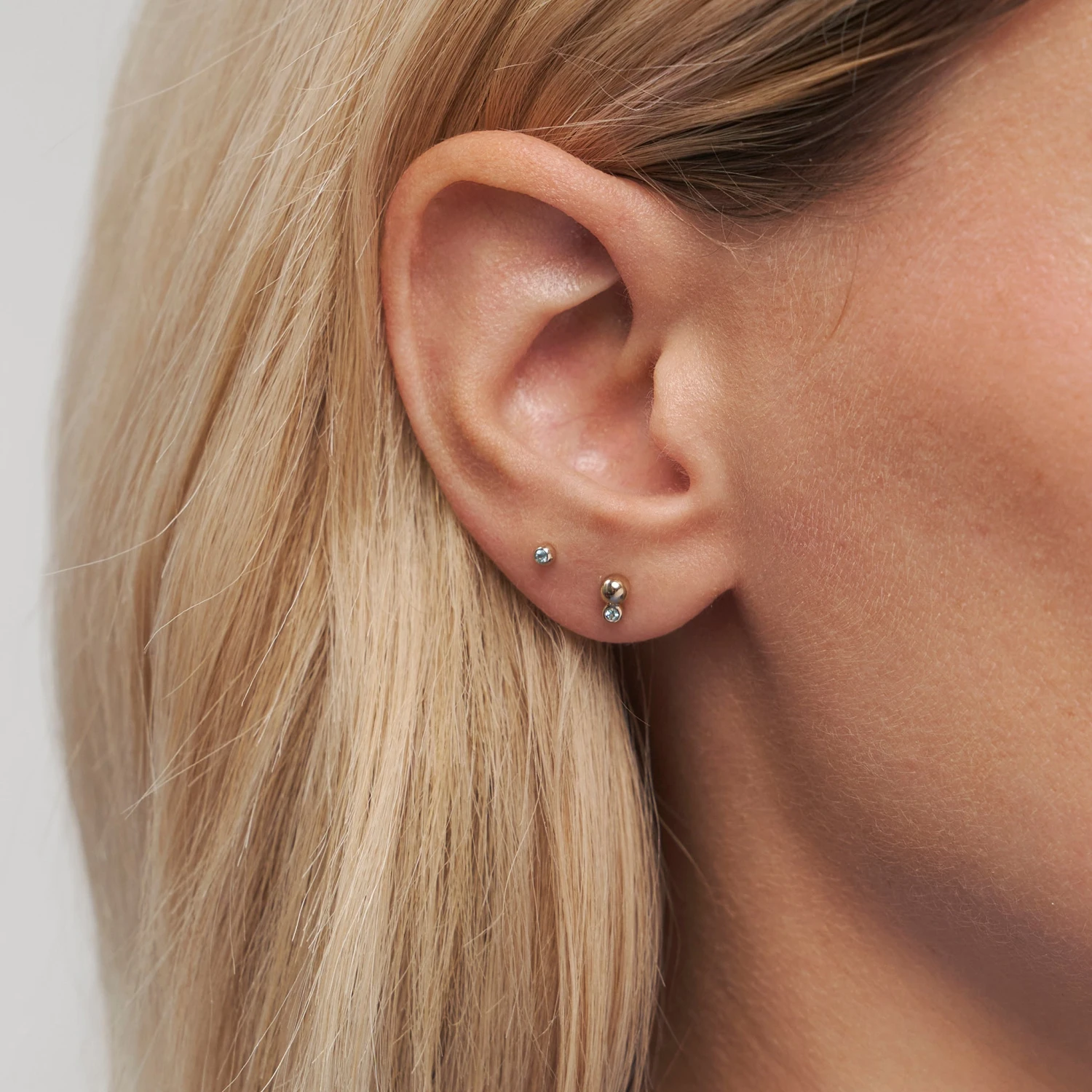 Aquamarine Brilliant Dot Stud Earrings- Single | 14k Gold