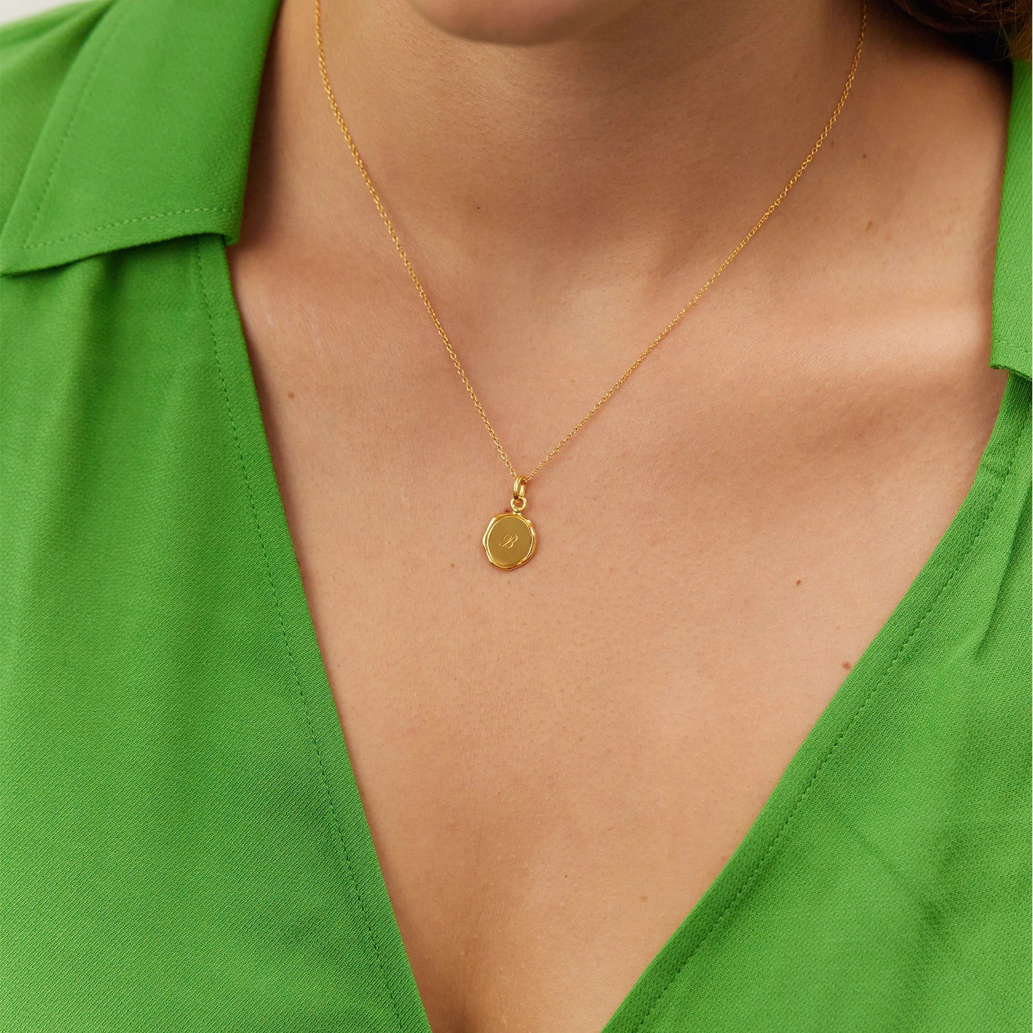 Engravable Seal Necklace | 14k Gold