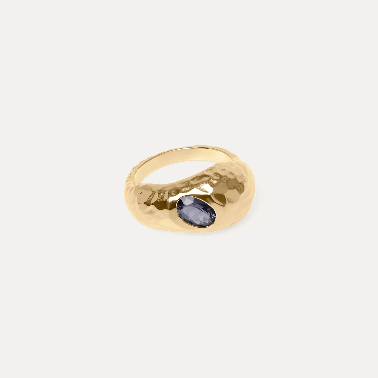 The cocktail ring for those into textures and organic shapes. Say cheers to us and to you with the Violet Fizz Cocktail Ring, This piece is available in 24K gold vermeil and sterling silver, set with an ethically sourced Iolith stone.