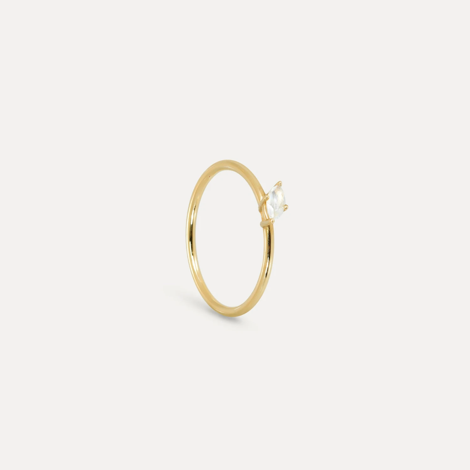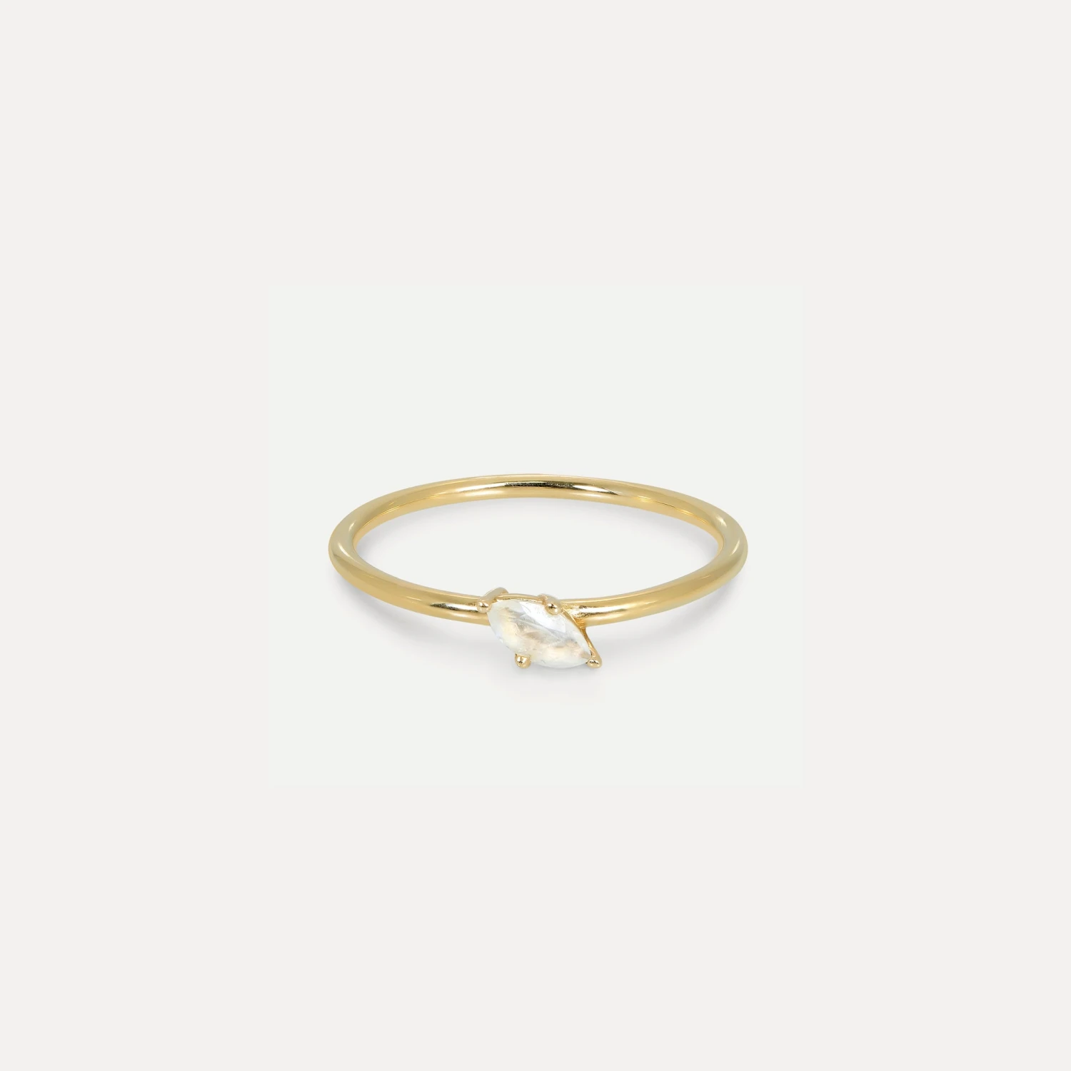 The Navette Solitaire Ring features a fairly sourced Moonstone set in a unique twisted design.