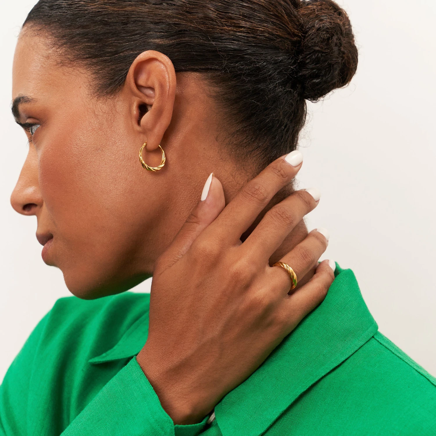 The name reveals the inspiration for these wonderful 14k solid gold Hoops – nests. Narrow at the top and broadening towards the bottom, these lovely gold nests will be an eye-catcher on your ear.
