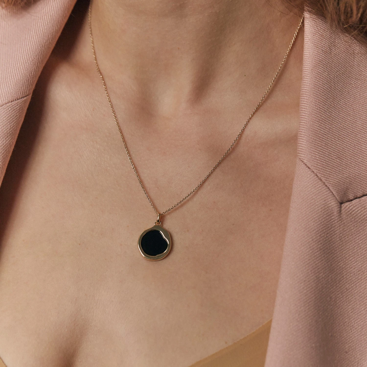 A pendant with a surrealistic design that was inspired by nature and liquidity. The Organic Onyx Pendant represents night whilst the Organic Crystal piece stands for light. Crafted from 14K recycled gold in the South of Germany.